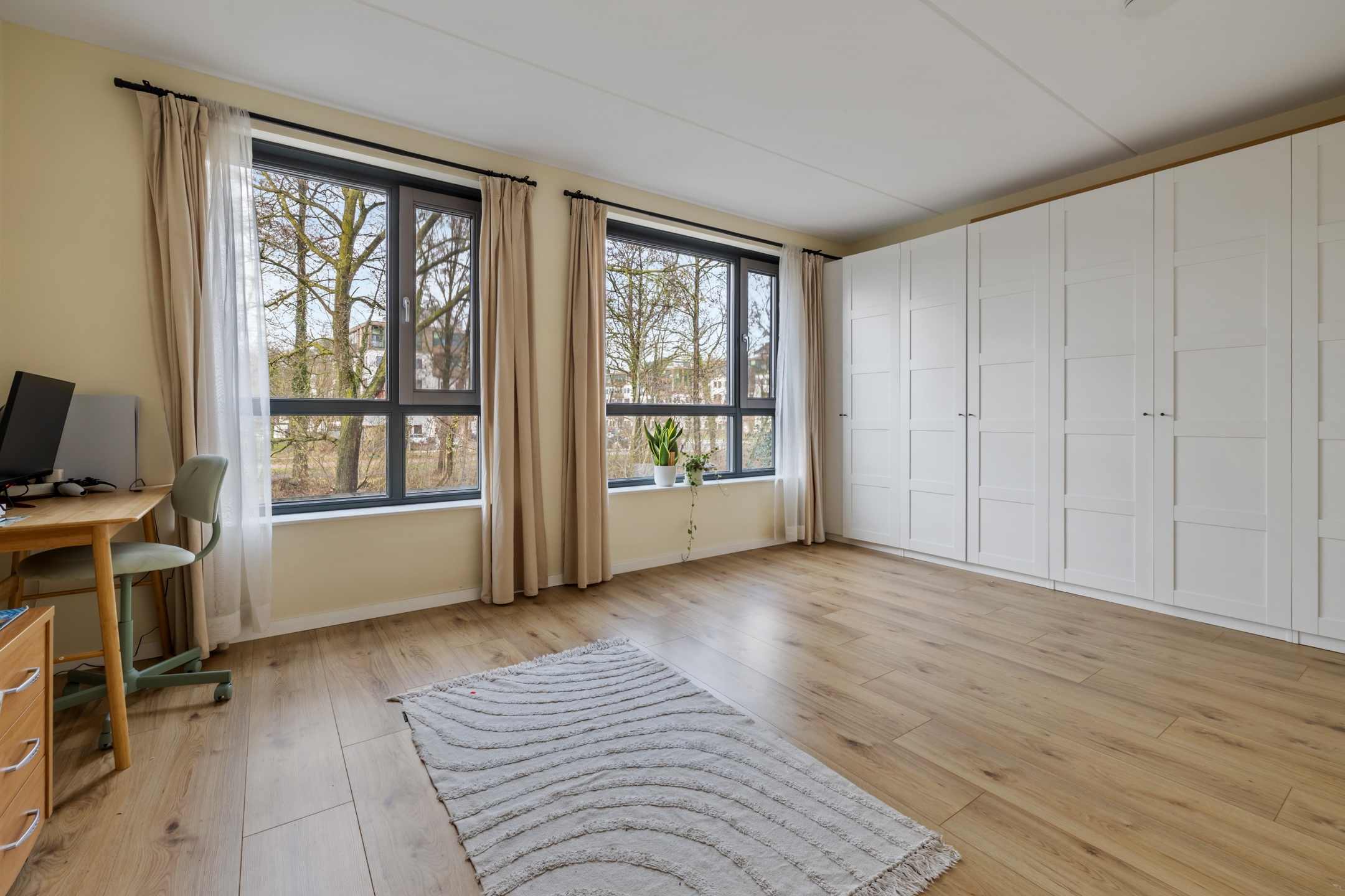 Ben jij op zoek naar een moderne en instapklare woning met volop ruimte? Deze woning beschikt over maar liefst 6 slaapkamers, ideaal voor een groot gezin, thuiswerken of hobbyruimte. Met energie-efficiëntie hoog in het vaandel – dankzij het energielabel A+++ – ben je hier verzekerd van lage stookkosten en een duurzaam thuis. Geniet van comfort en ruimte in een omgeving waar kinderen vrijuit kunnen spelen en waar het leven gewoon goed is. Winkels, scholen, kinderopvang en uitvalswegen bevinden zich in de directe omgeving. Bovendien ben je binnen enkele minuten op de A2 en A12 en sta je in korte tijd in het centrum van Nieuwegein of Utrecht. De perfecte combinatie van ruimte, duurzaamheid en bereikbaarheid! Indeling Begane grond: Entree/hal, toilet met fonteintje, royale woonkamer (ruim 61 m²) met deur naar de tuin (4,25 x 5,50), en een luxe open keuken (5,10 x 2,95) voorzien van vele apparatuur, trap naar.. Eerste verdieping 1e verdieping: Overloop, 3 slaapkamers: slaapkamer 1 (3,85 x 5,15), slaapkamer 2 (3,44 x 2,98), slaapkamer 3 (2,34 x 2,07), moderne en goed afgewerkte badkamer (1,86 x 2,98) met inloopdouche, 2e toilet en vaste wastafel. Tweede verdieping 2e verdieping: Overloop, 3 slaapkamers: slaapkamer 1: (3,81 x 5,15), slaapkamer 2: (3,45 x 2,98), slaapkamer 3: (2,34 x 2,07), berging (1,89 x 2,98). Tuin Tuin aan de voorzijde: (4,66 × 5,50) circa 26 m² met houten berging. Tuin aan de achterzijde: (4,25 × 5,50) circa 23 m². Bijzonderheden ▪ Royale hoekwoning aan water, opgeleverd in 2022 met een moderne uitstraling; ▪ Hoogwaardige afwerking van de keuken, badkamer, vloeren en wanden; ▪ Woonkamer is uitgebouwd, voorzien van voor en achtertuin; ▪ Gehele woning voorzien van vloerverwarming en dubbele beglazing; ▪ Gelegen in de groene en kindvriendelijke wijk Rijnhuizen; ▪ 10 zonnepanelen, standaard geplaatst vanuit de bouw bij oplevering; ▪ Uitstekende isolatievoorzieningen vanaf de bouw (Energielabel A+++); ▪ Voldoende (gratis) parkeergelegenheid in de directe omgeving.