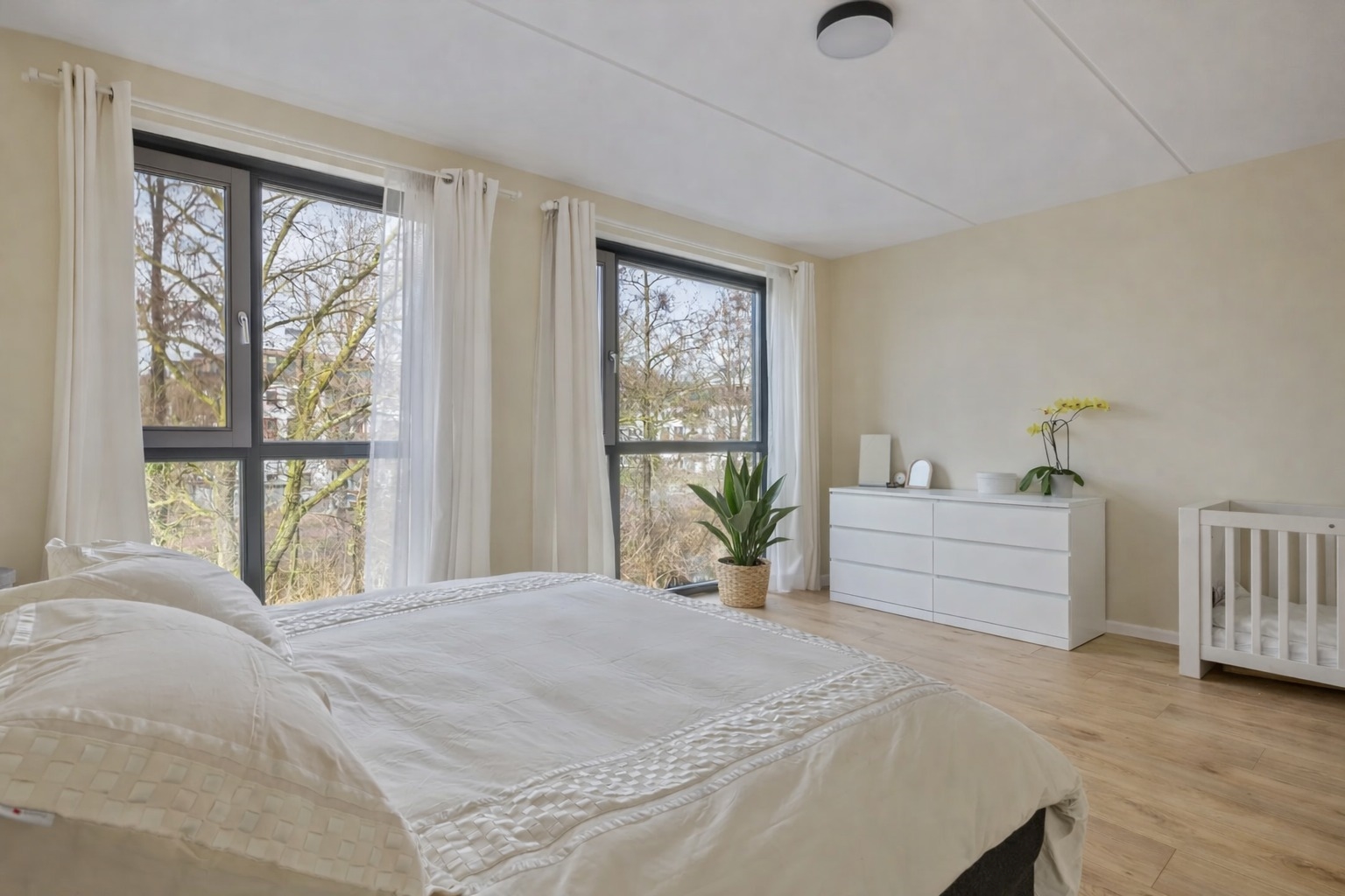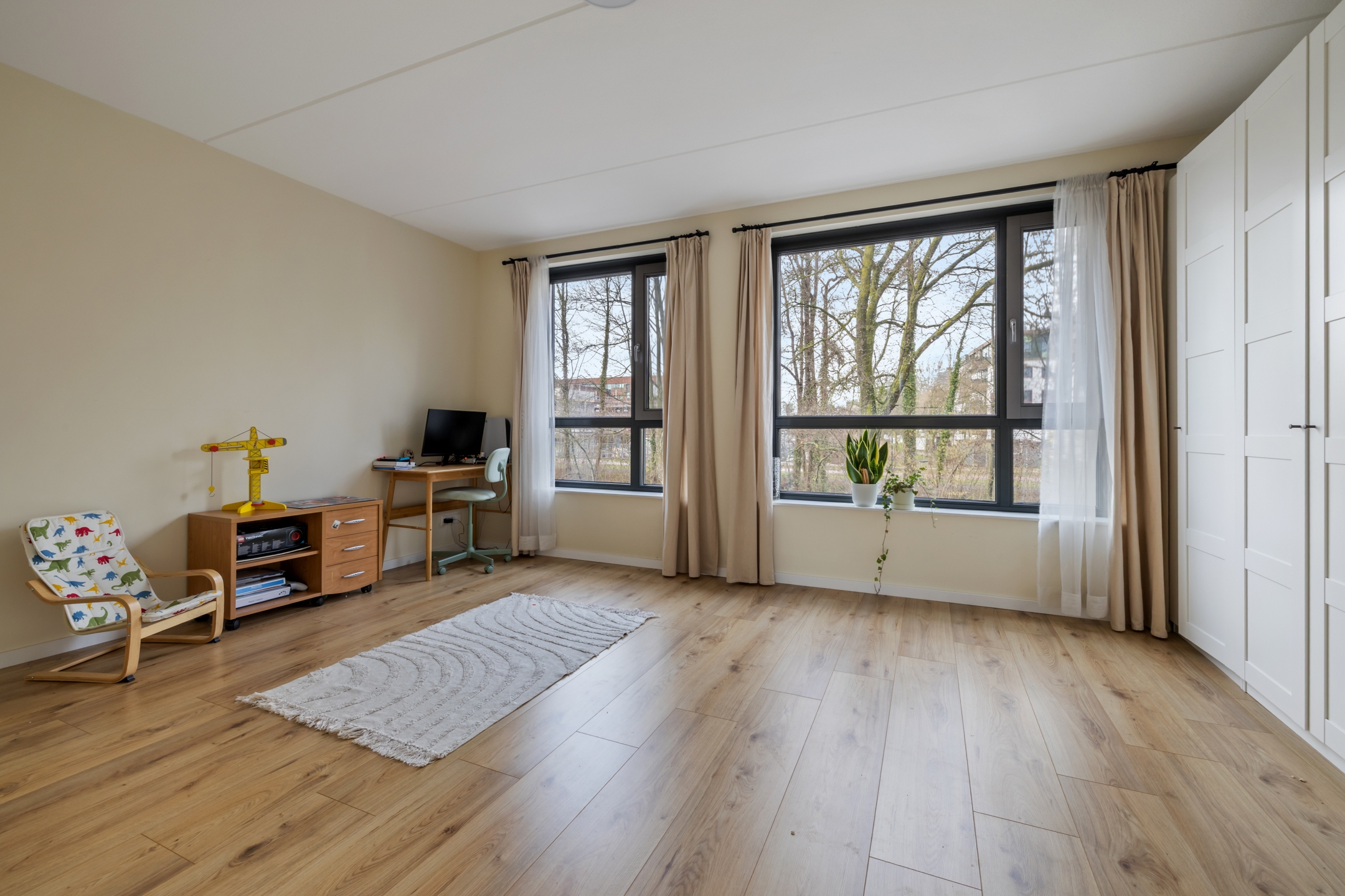 Ben jij op zoek naar een moderne en instapklare woning met volop ruimte? Deze woning beschikt over maar liefst 6 slaapkamers, ideaal voor een groot gezin, thuiswerken of hobbyruimte. Met energie-efficiëntie hoog in het vaandel – dankzij het energielabel A+++ – ben je hier verzekerd van lage stookkosten en een duurzaam thuis. Geniet van comfort en ruimte in een omgeving waar kinderen vrijuit kunnen spelen en waar het leven gewoon goed is. Winkels, scholen, kinderopvang en uitvalswegen bevinden zich in de directe omgeving. Bovendien ben je binnen enkele minuten op de A2 en A12 en sta je in korte tijd in het centrum van Nieuwegein of Utrecht. De perfecte combinatie van ruimte, duurzaamheid en bereikbaarheid! Indeling Begane grond: Entree/hal, toilet met fonteintje, royale woonkamer (ruim 61 m²) met deur naar de tuin (4,25 x 5,50), en een luxe open keuken (5,10 x 2,95) voorzien van vele apparatuur, trap naar.. Eerste verdieping 1e verdieping: Overloop, 3 slaapkamers: slaapkamer 1 (3,85 x 5,15), slaapkamer 2 (3,44 x 2,98), slaapkamer 3 (2,34 x 2,07), moderne en goed afgewerkte badkamer (1,86 x 2,98) met inloopdouche, 2e toilet en vaste wastafel. Tweede verdieping 2e verdieping: Overloop, 3 slaapkamers: slaapkamer 1: (3,81 x 5,15), slaapkamer 2: (3,45 x 2,98), slaapkamer 3: (2,34 x 2,07), berging (1,89 x 2,98). Tuin Tuin aan de voorzijde: (4,66 × 5,50) circa 26 m² met houten berging. Tuin aan de achterzijde: (4,25 × 5,50) circa 23 m². Bijzonderheden ▪ Royale hoekwoning aan water, opgeleverd in 2022 met een moderne uitstraling; ▪ Hoogwaardige afwerking van de keuken, badkamer, vloeren en wanden; ▪ Woonkamer is uitgebouwd, voorzien van voor en achtertuin; ▪ Gehele woning voorzien van vloerverwarming en dubbele beglazing; ▪ Gelegen in de groene en kindvriendelijke wijk Rijnhuizen; ▪ 10 zonnepanelen, standaard geplaatst vanuit de bouw bij oplevering; ▪ Uitstekende isolatievoorzieningen vanaf de bouw (Energielabel A+++); ▪ Voldoende (gratis) parkeergelegenheid in de directe omgeving.